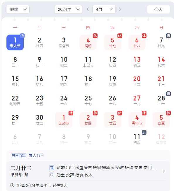 清明節假期將至,根據國家節假日放假規定并結合公司的實際情況,公司特將2024年清明節放假做以下安排:
